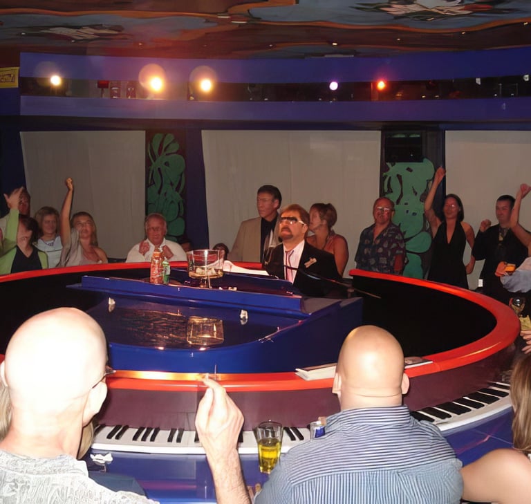After 14 years at the Comedy-Dinner Theatre, thousands of shows, and an equal number of fart jokes, I set off to become a Cruise Ship Pianobar entertainer. Performing on 5 different Cruise Lines, and being fired twice, I brought joy and music to countless seasick drunks for 6 years.